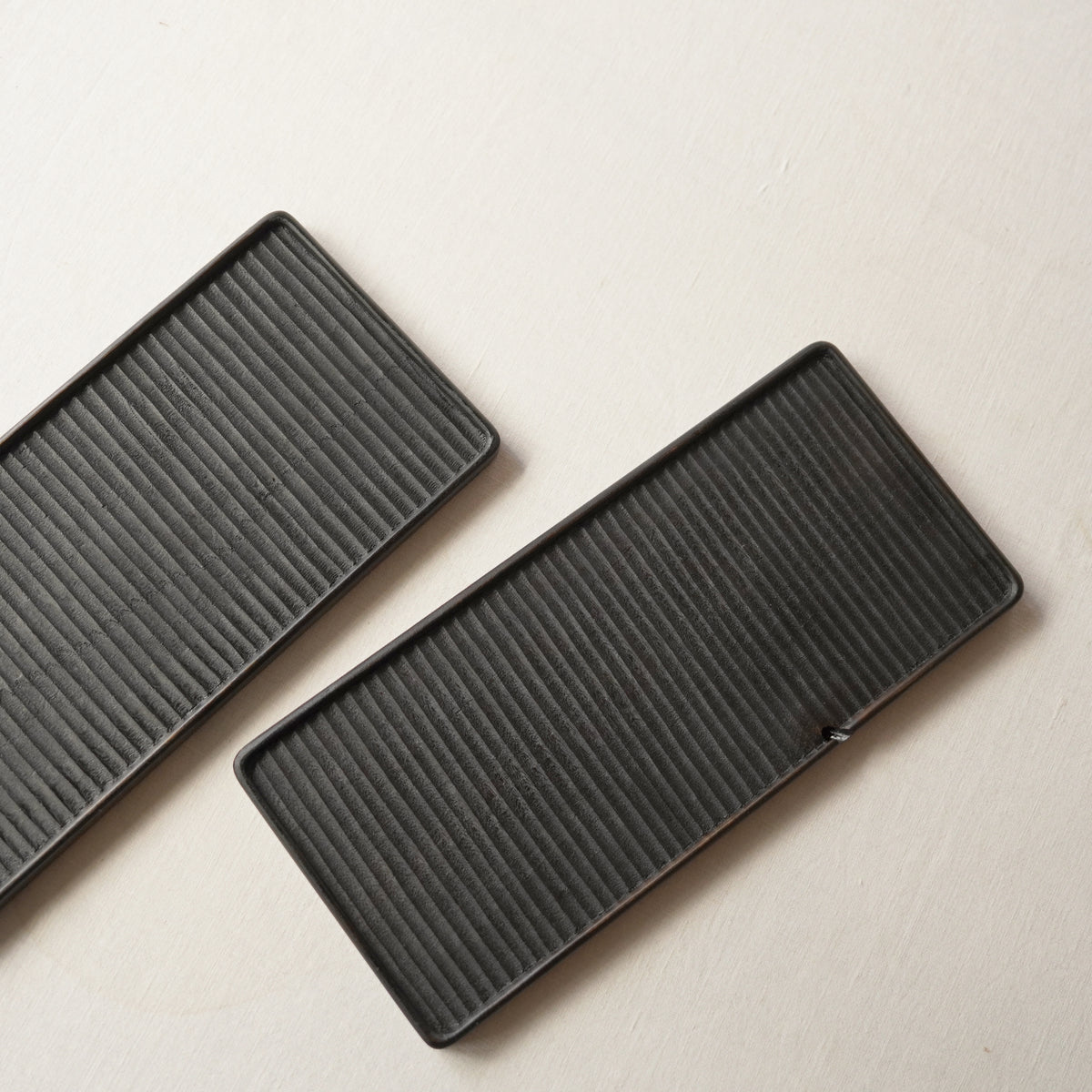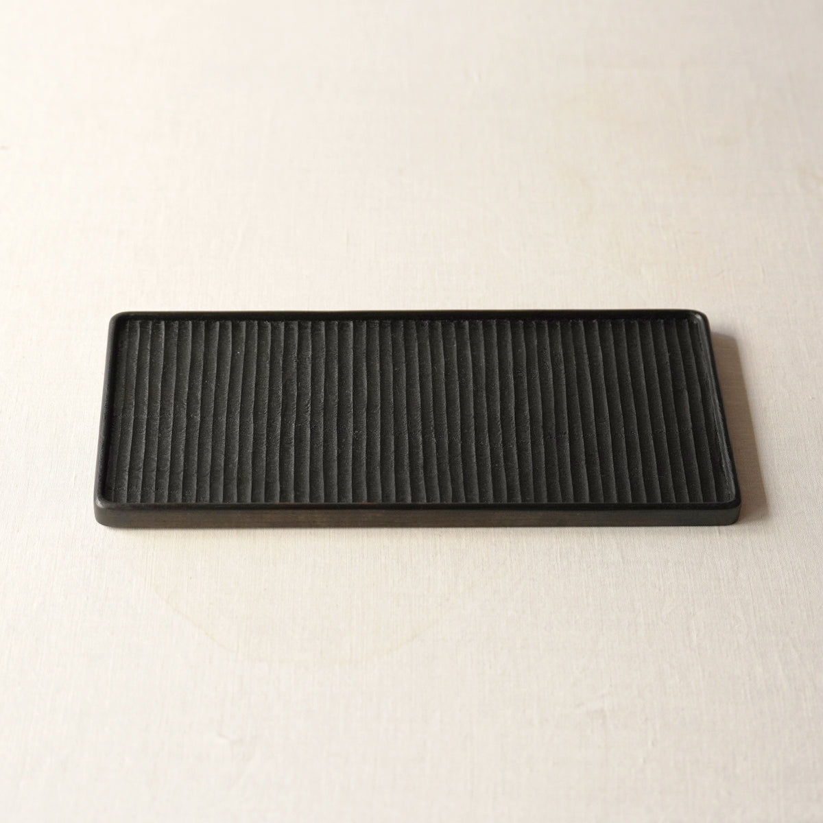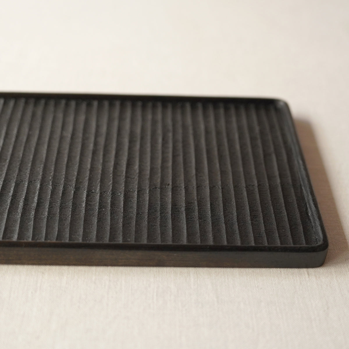 きりっとした拭き漆の黒が際立つ、シンプルな長方形のお盆。