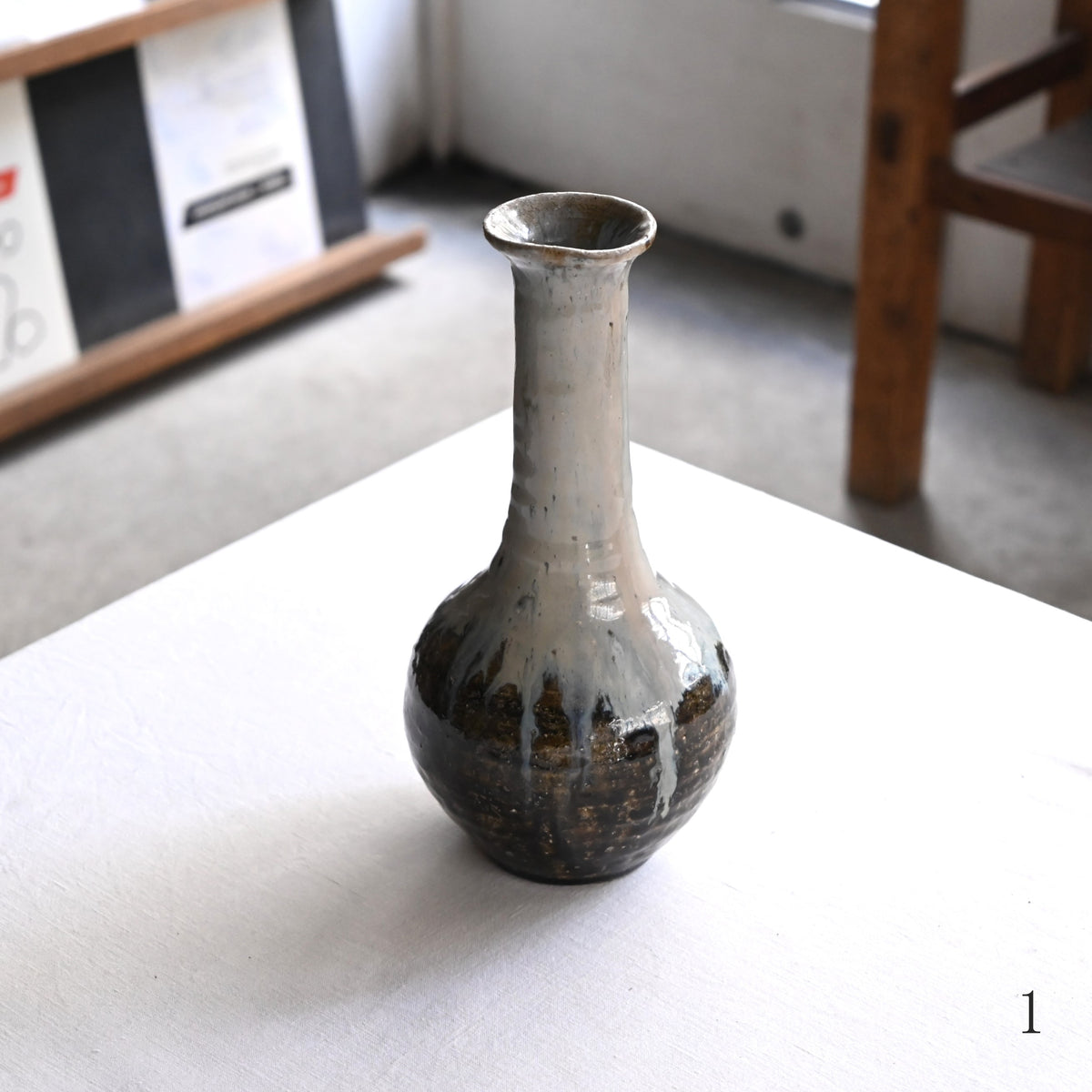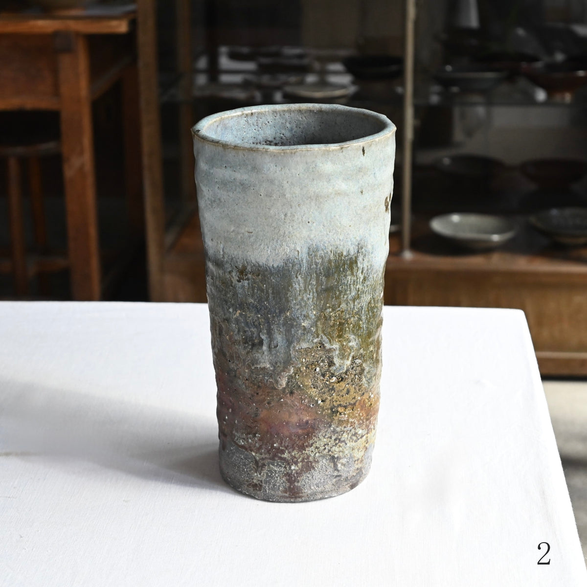 ゆっくりと流れ落ちる釉薬の姿が美しい朝鮮花入。