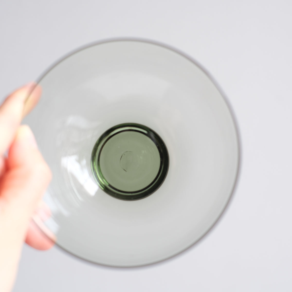 ガラスの底にある丸い跡は、吹きガラスの工程でできる跡です。