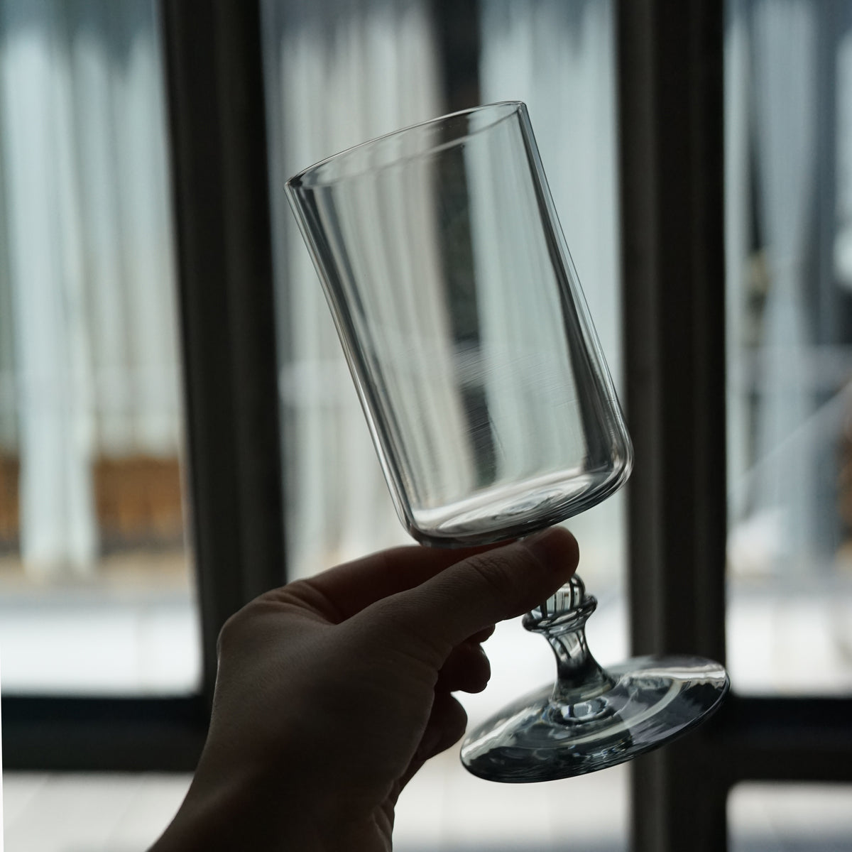 すとんとしたかたちと、しずくのようなステムのバランスが美しいグラス。