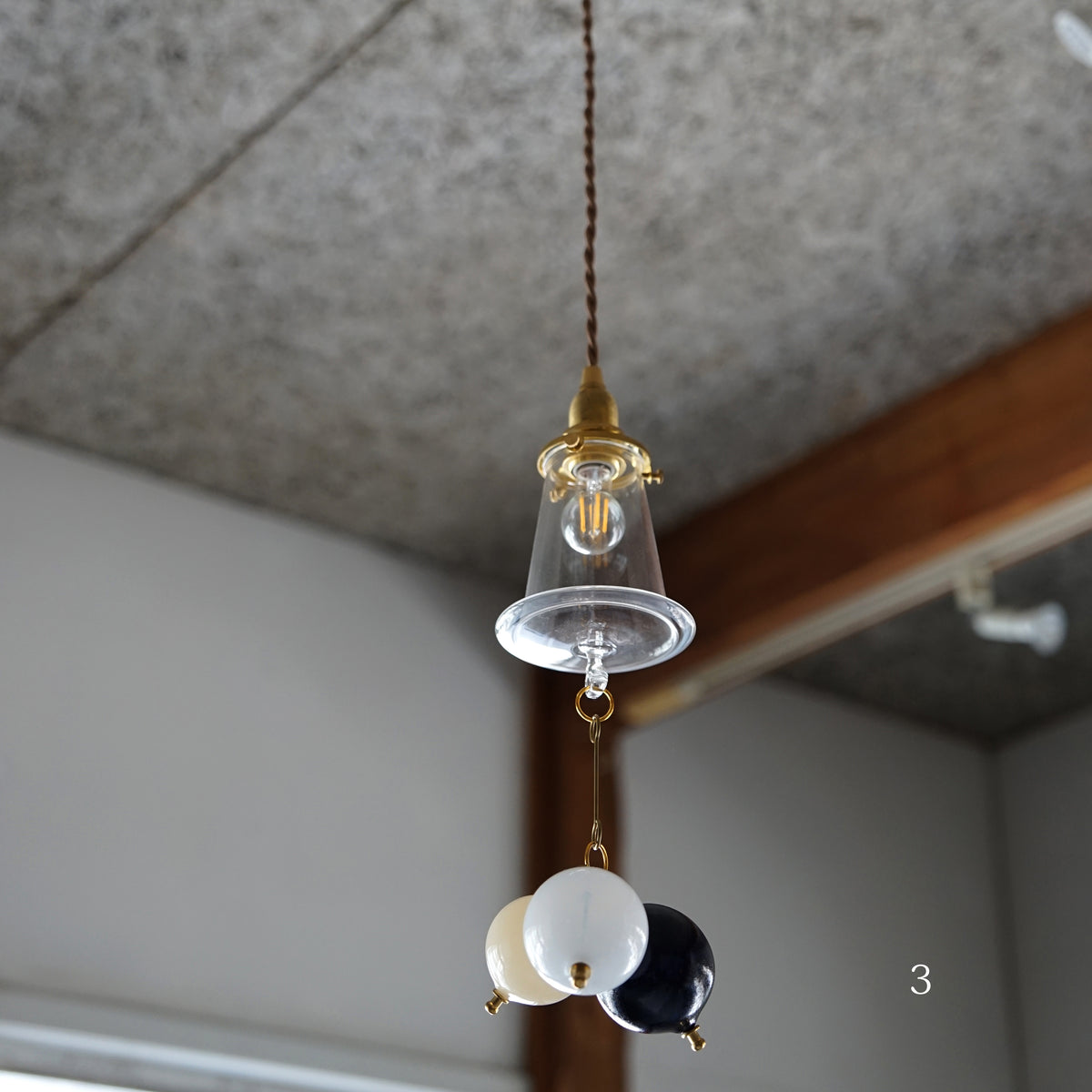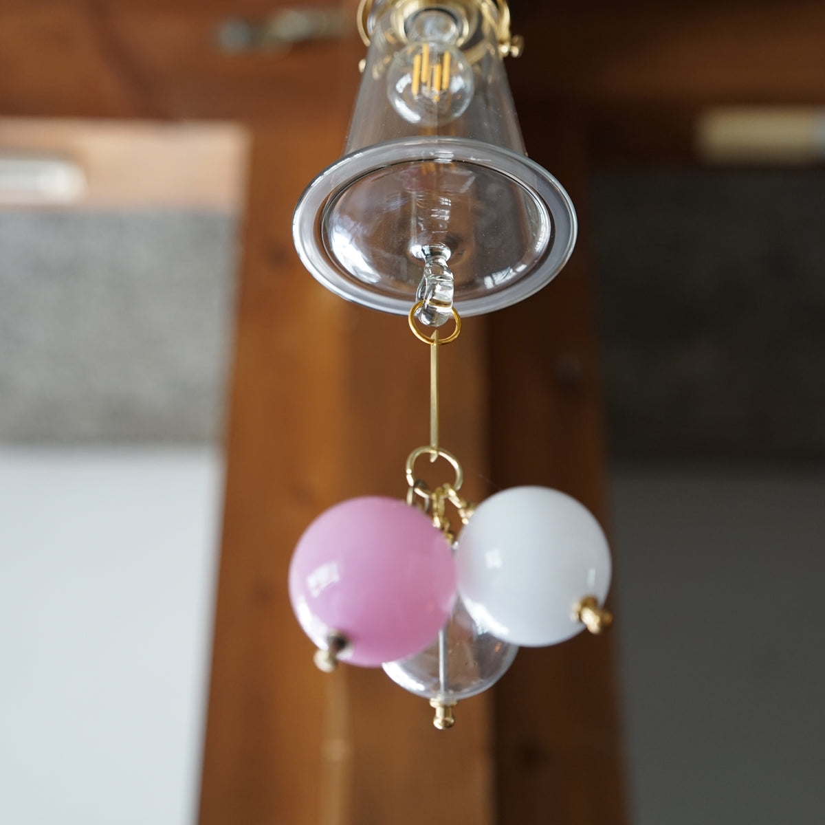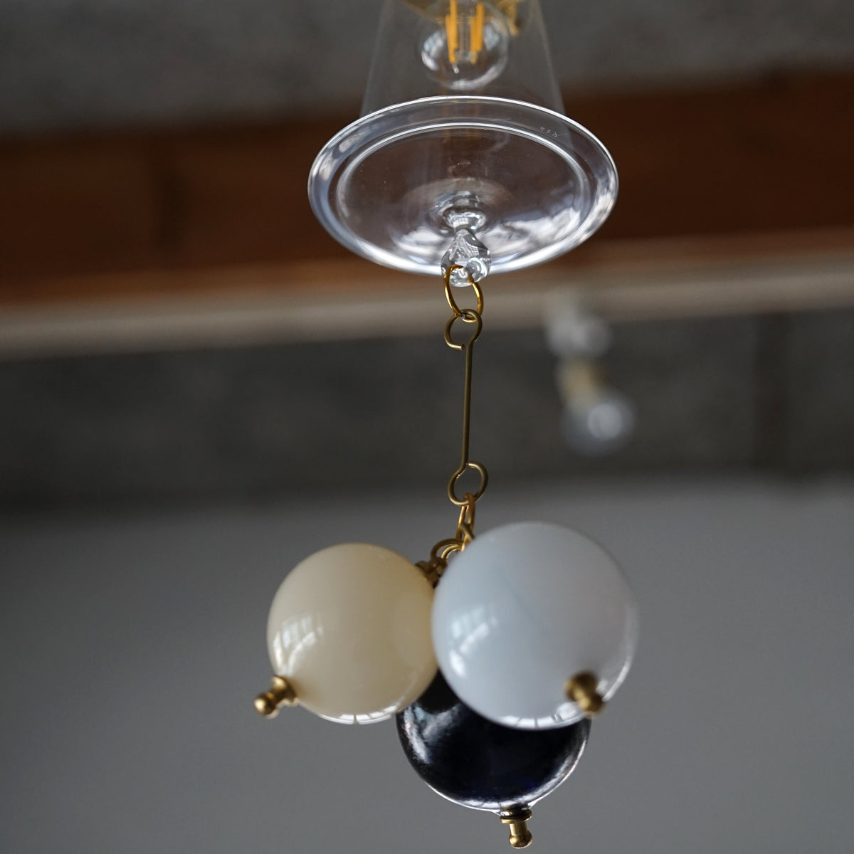 ふわりと優しく揺れるワダさんのハングボールランプ。