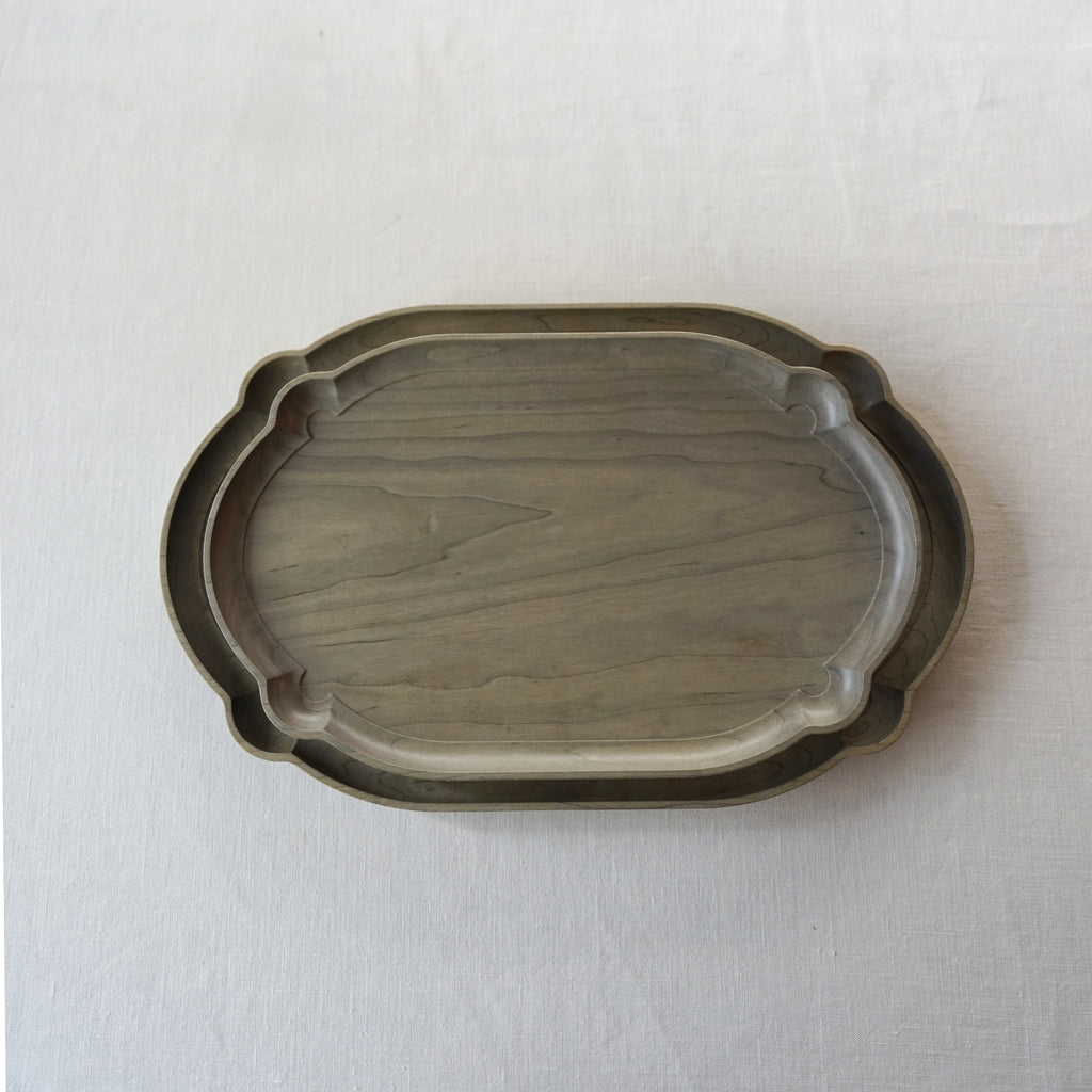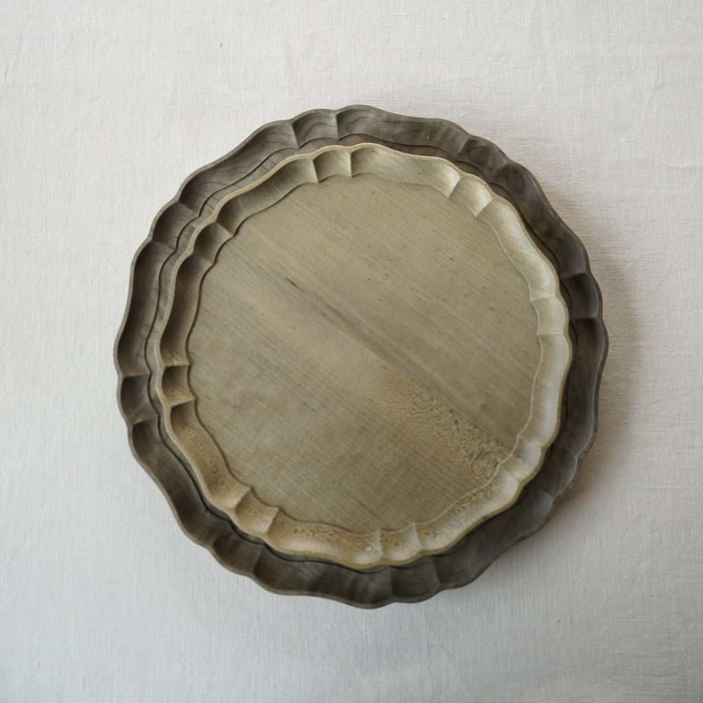 傷や汚れがつきにくいよう下地に耐水塗装、自然な光沢になるよう最後にオイルで仕上げています。耐水塗装は学校給食の木製食器にも使われています。安全なものですが化学物質に過敏に反応される方にはおすすめできないことご理解お願い致します。