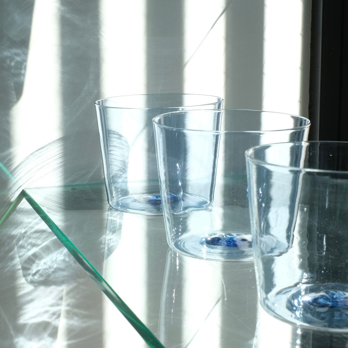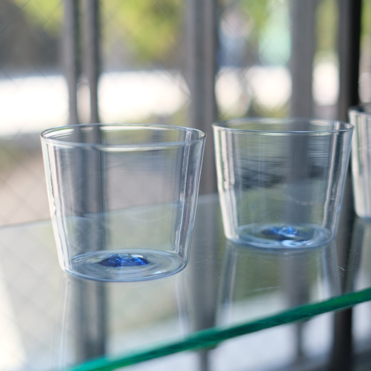 ガラスの底にある丸い跡は、吹きガラスの工程でできる跡です。