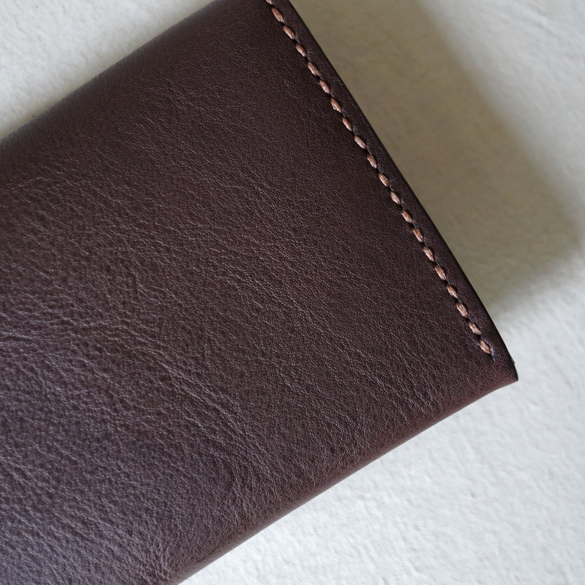 ステッチの糸はよりが細かく美しいドイツjulius koch社の糸を使い、ひとつひとつ手縫いで仕上げています。目立たせたり、なじませたり、糸の色でも印象が変わります。