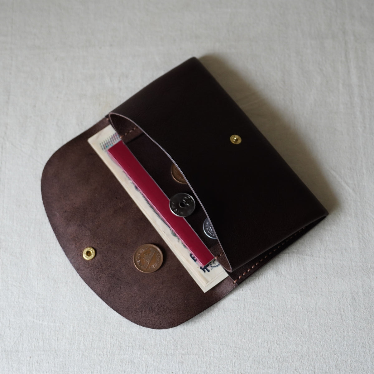 チャックの無いシンプルな仕様ですが、小銭を入れても横からこぼれずしっかりと開きやすい仕様。